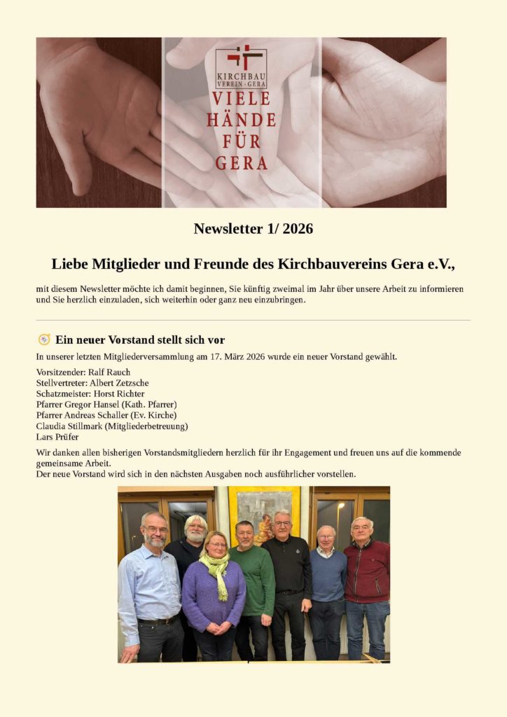Liebe Mitglieder und Freunde des Kirchbauvereins Gera e.V.,